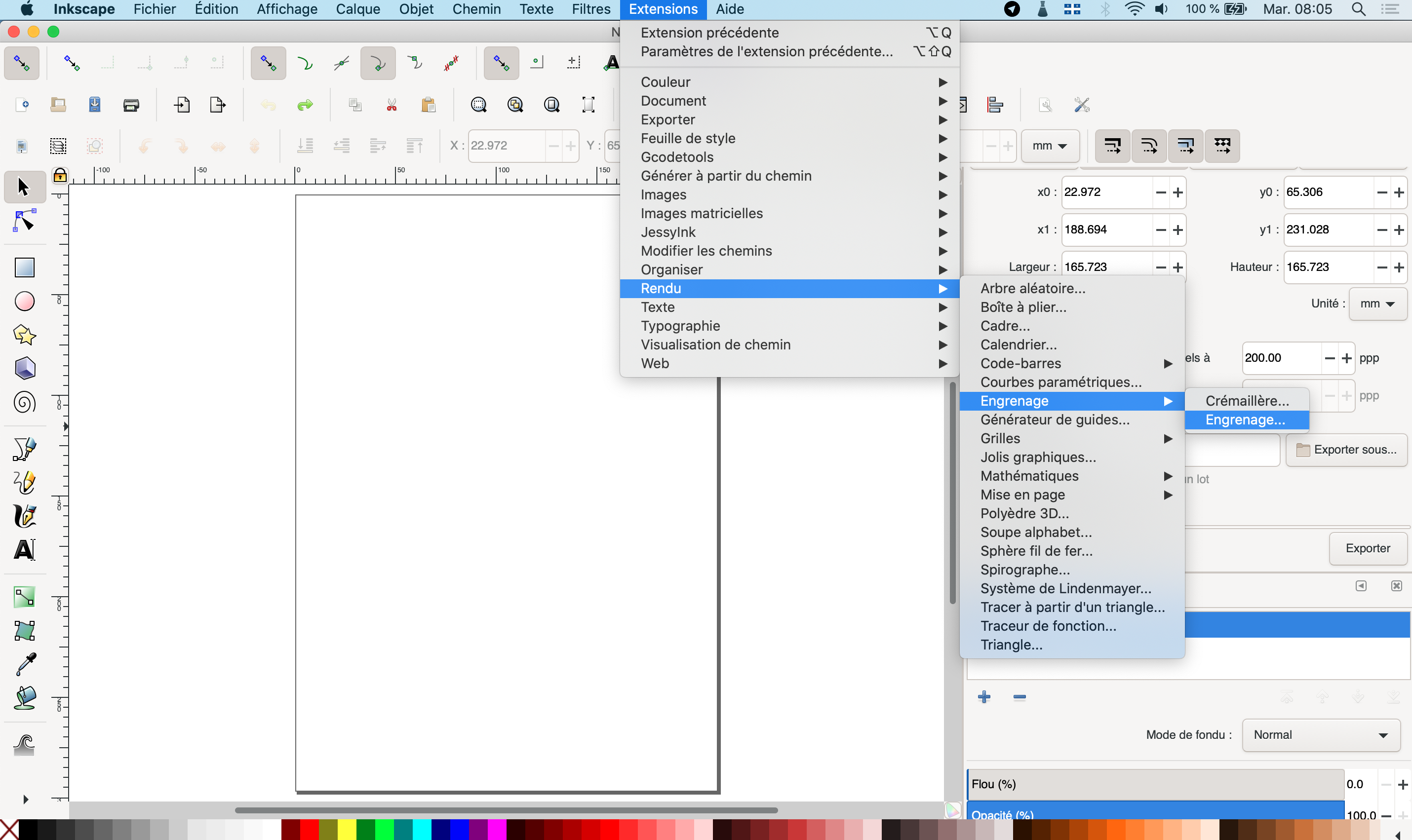 2. Allez à : 'Extensions → Rendus → Engrenages → Engrenages