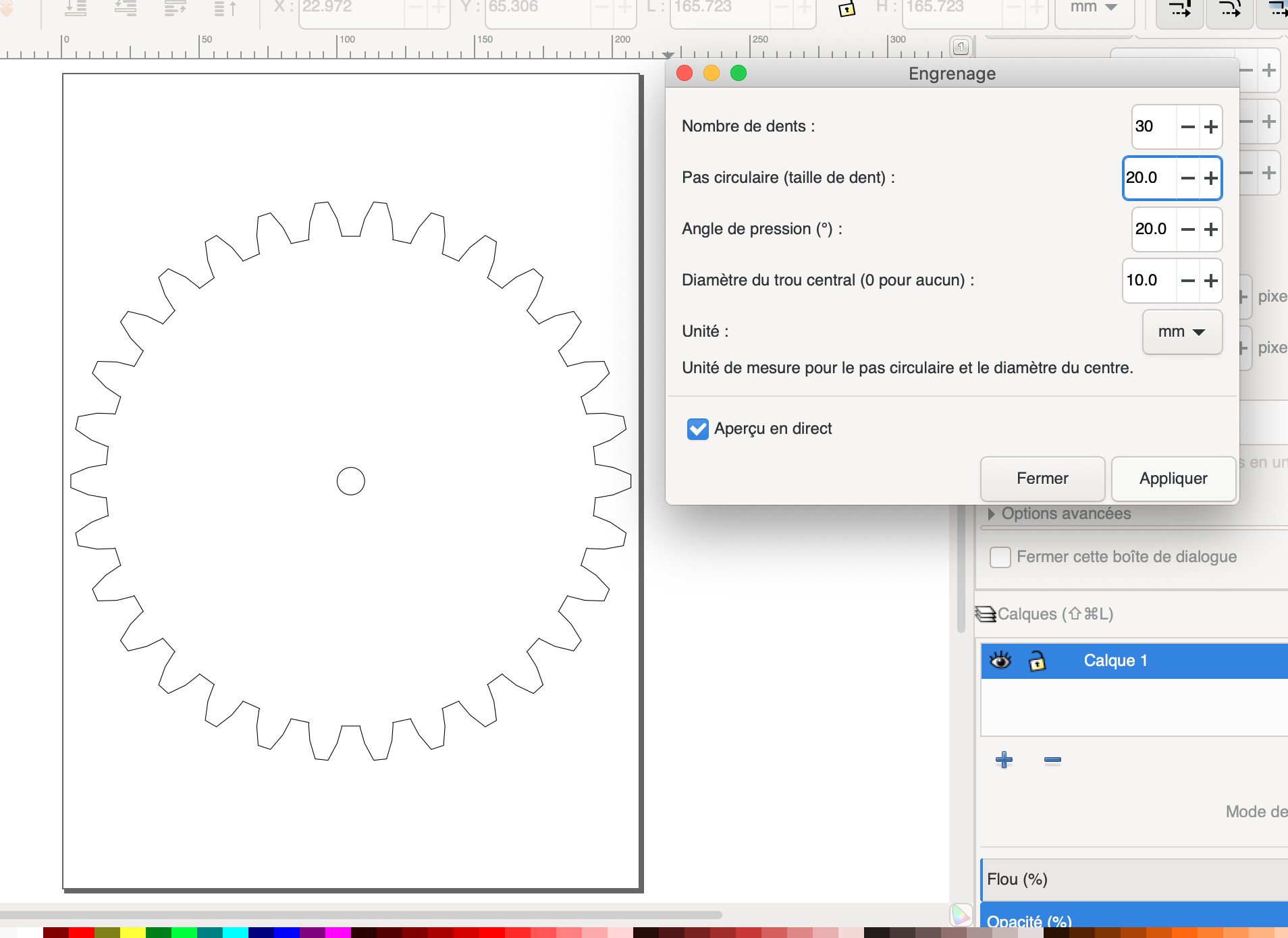 3. Choisissez : le nombre de dents, le pas circulaire (taille des dents), l'angle de pression, le diamètre du trou central et l'unité de mesure