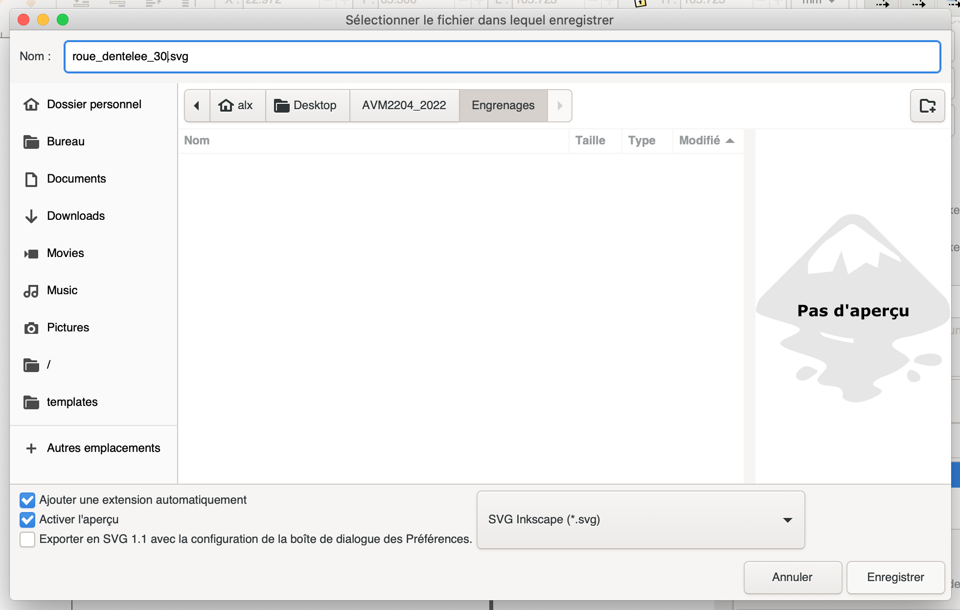 4. Sauvegardez le fichier en format .svg (svg est un format vectoriel), prêt pour la découpe laser ou la découpe par'CNC' (Computer Numerical Control)