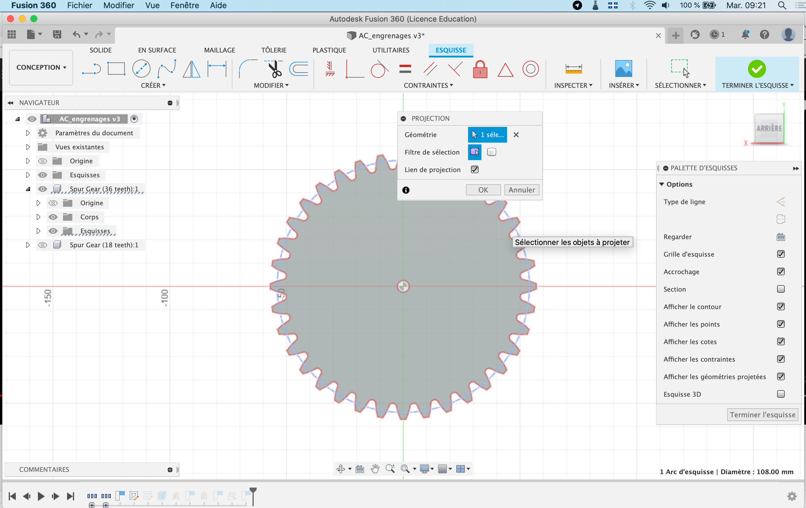 1. Sélectionnez le contour en appuyant sur la touche 'p' du clavier ('p' permet de projeter les points dans une esquisse).