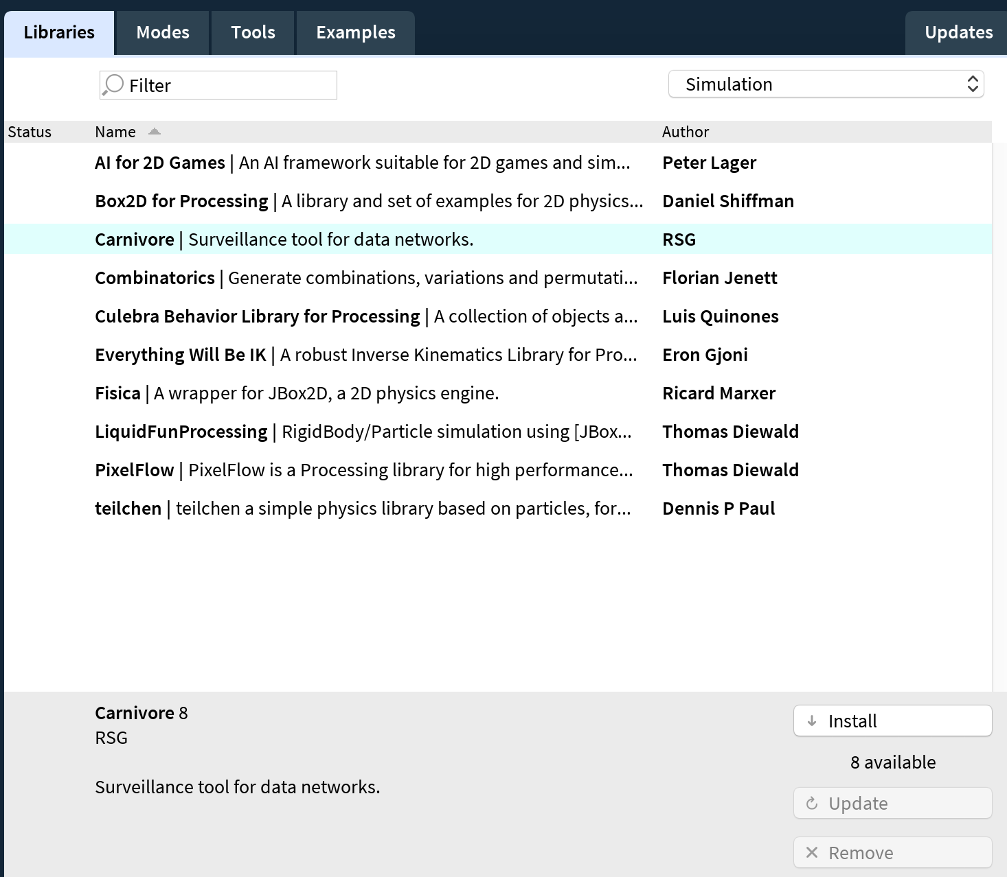 Les librairies, sont documentées sur le site de Processing : https://processing.org/reference/libraries/serial/index.html