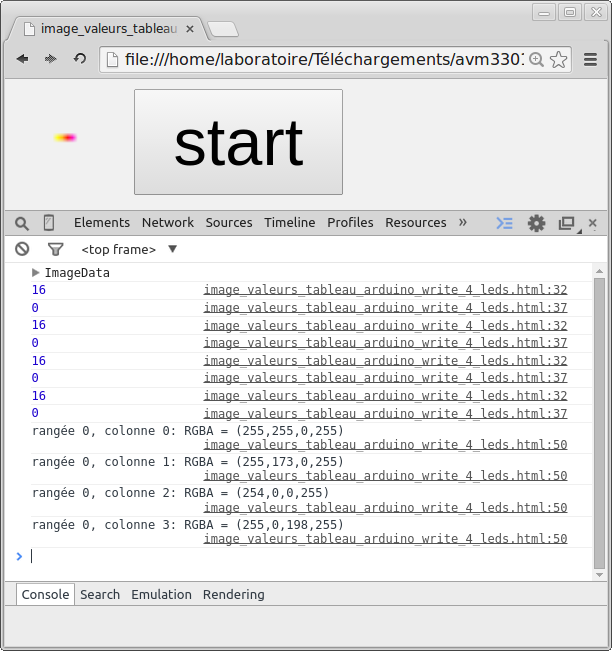 Ensuite, il suffisait de communiquer un pixel de l'image à une lumière. Le code pour cette portion Ainsi le code javascript est relié au code Arduino par ce code